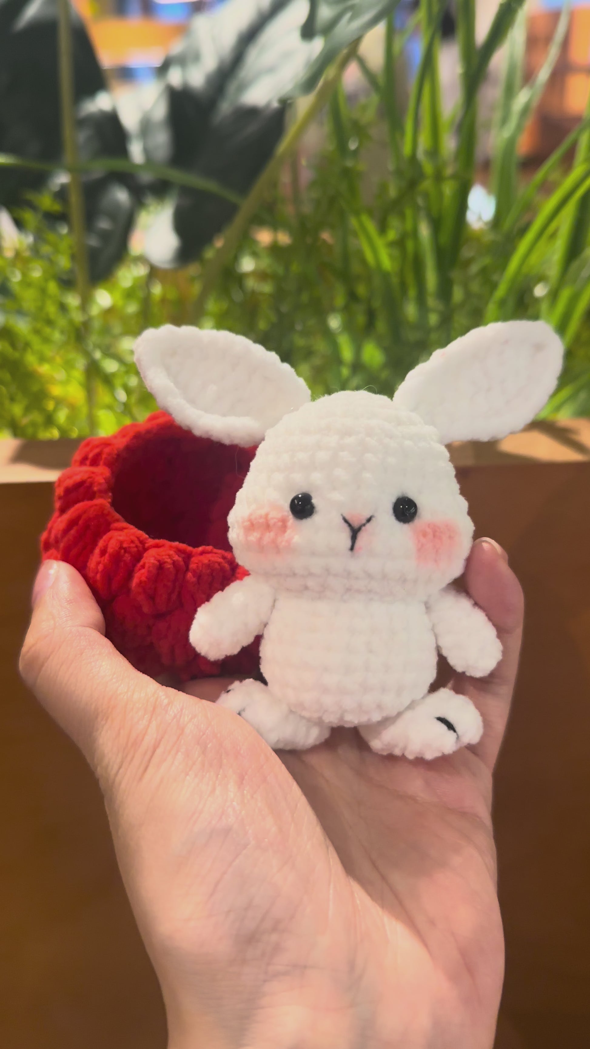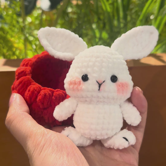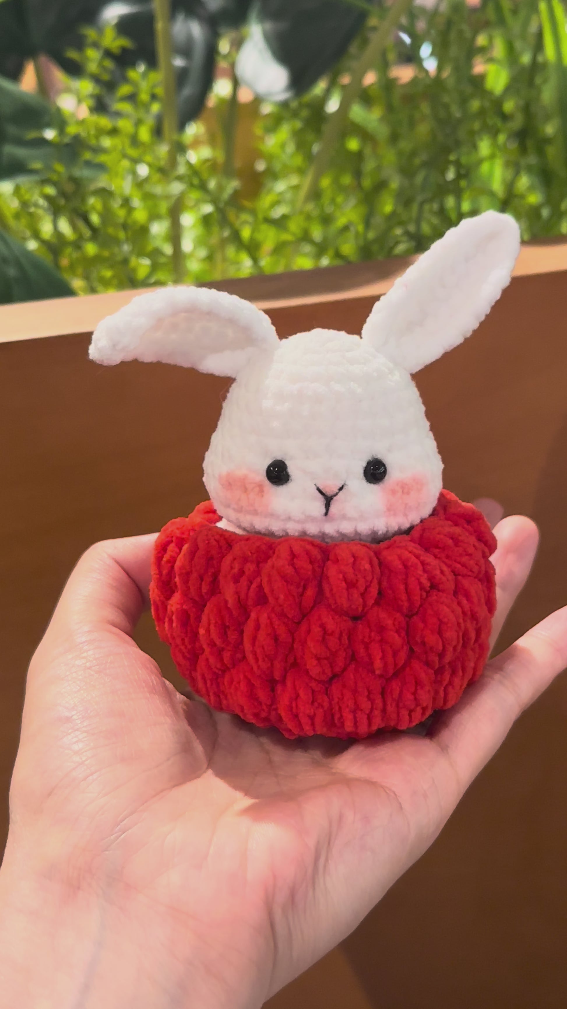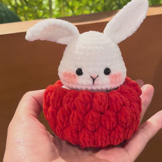 Meet the Cranberry Bunny 🍒🐰 — a sweet little friend with the juiciest berry vibes! This handmade bunny is snugly wrapped in a cranberry-inspired bottom, with a soft bunny head peeking out.